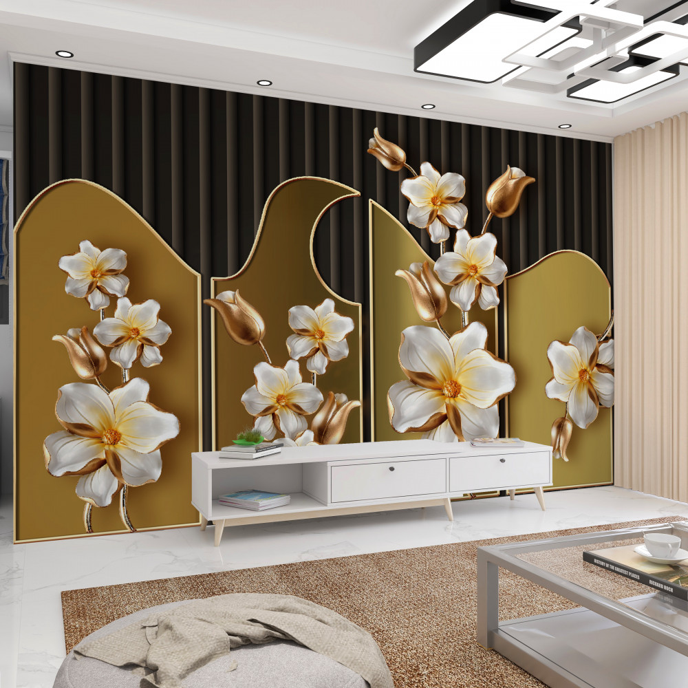 Tapeta Fototapeta gałązki białego hiacyntu na złocie (artykuł pb8916 ) z kategorii Fototapety 3D