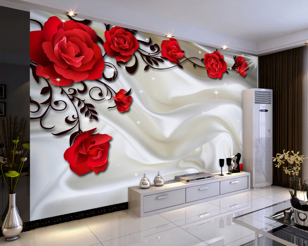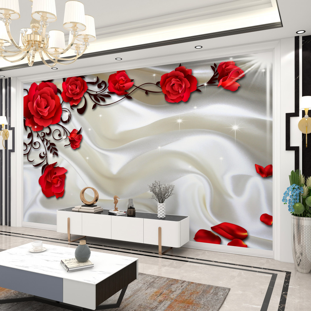 Tapeta Fototapeta gałązki czerwonej róży na delikatnym jedwabnym tle (artykuł a94224 ) z kategorii Fototapety 3D
