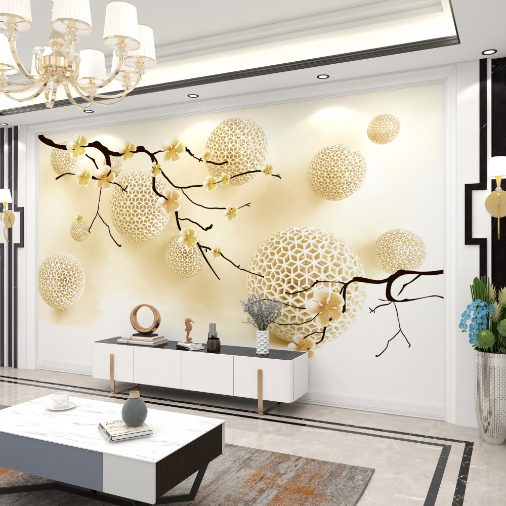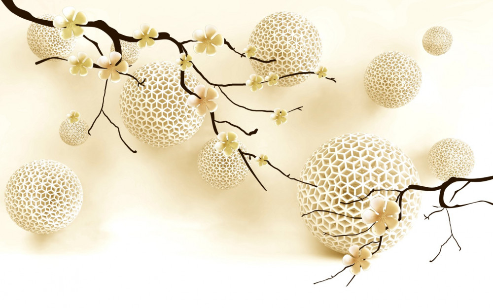 Tapeta Fototapeta gałęzie kwiatów w pąkach i złote kule (artykuł a91104 ) z kategorii Fototapety 3D