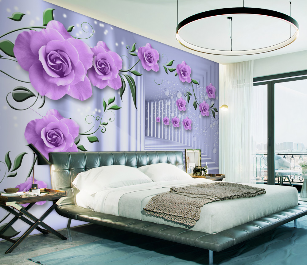 Tapeta Fototapeta gałęzie liliowych róż i biały korytarz (artykuł a93676 ) z kategorii Fototapety 3D