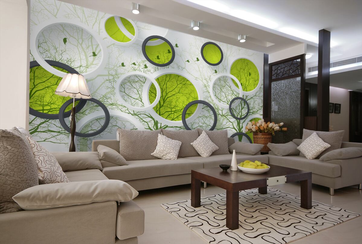Tapeta Fototapeta Geometryczne koła i drzewa (artykuł a98482 ) z kategorii Fototapety 3D