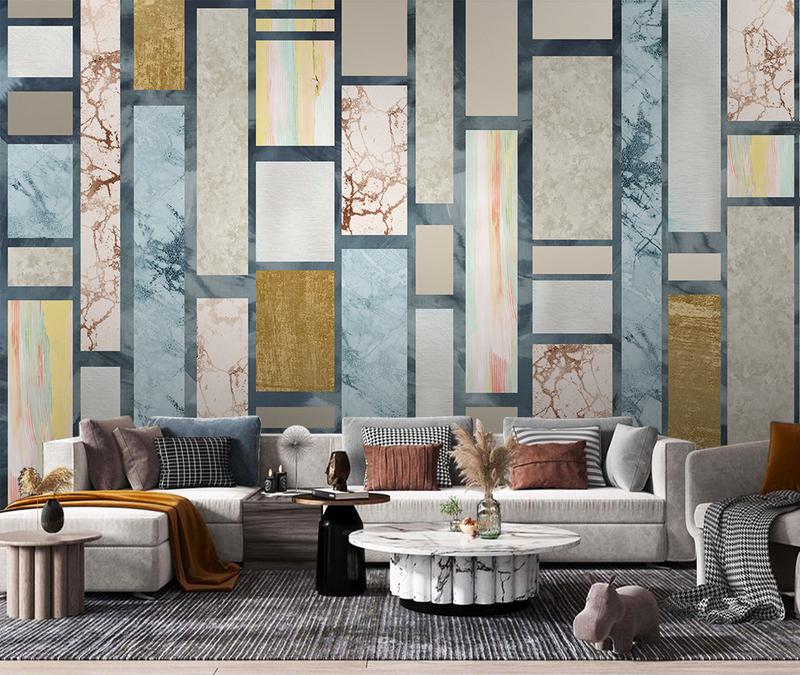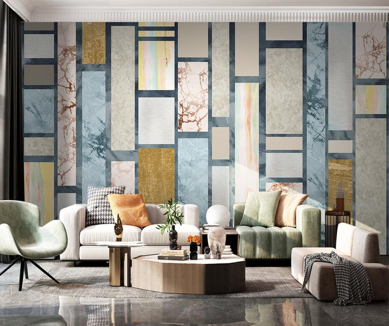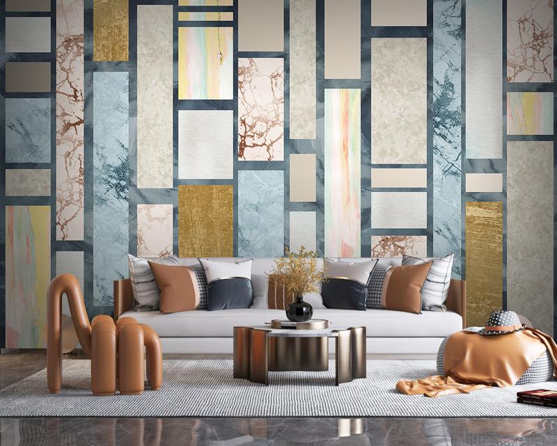 Tapeta Fototapeta geometryczny marmurowy błękitny złoty (artykuł a182 ) z kategorii Fototapety 3D