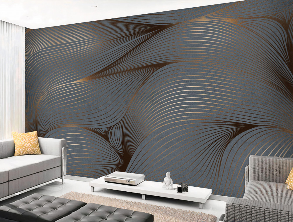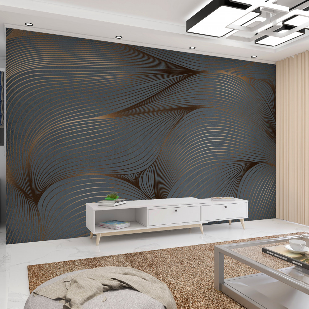 Tapeta Fototapeta gładkie abstrakcyjne linie ze złotymi krawędziami (artykuł a91069 ) z kategorii Fototapety 3D