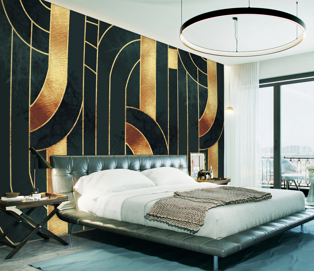Tapeta Fototapeta gładkie linie szmaragdu i złota (artykuł a90864 ) z kategorii Fototapety 3D