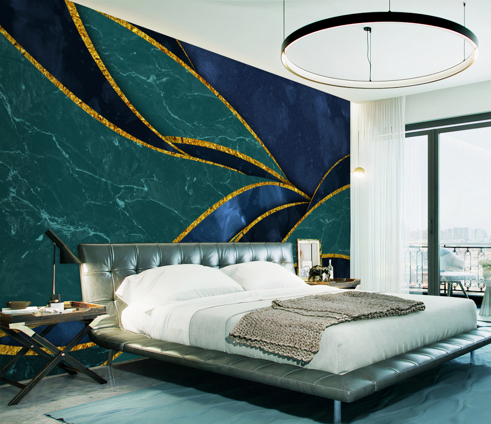 Tapeta Fototapeta gładkie szmaragdowe linie na niebieskim tle (artykuł a88382 ) z kategorii Fototapety 3D