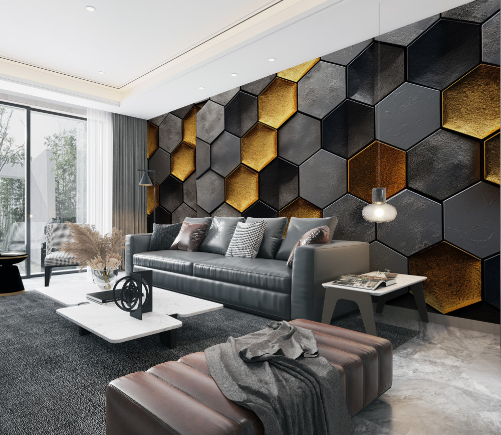 Tapeta Fototapeta imitacja plastra miodu ze złotem (artykuł a93316 ) z kategorii Fototapety 3D