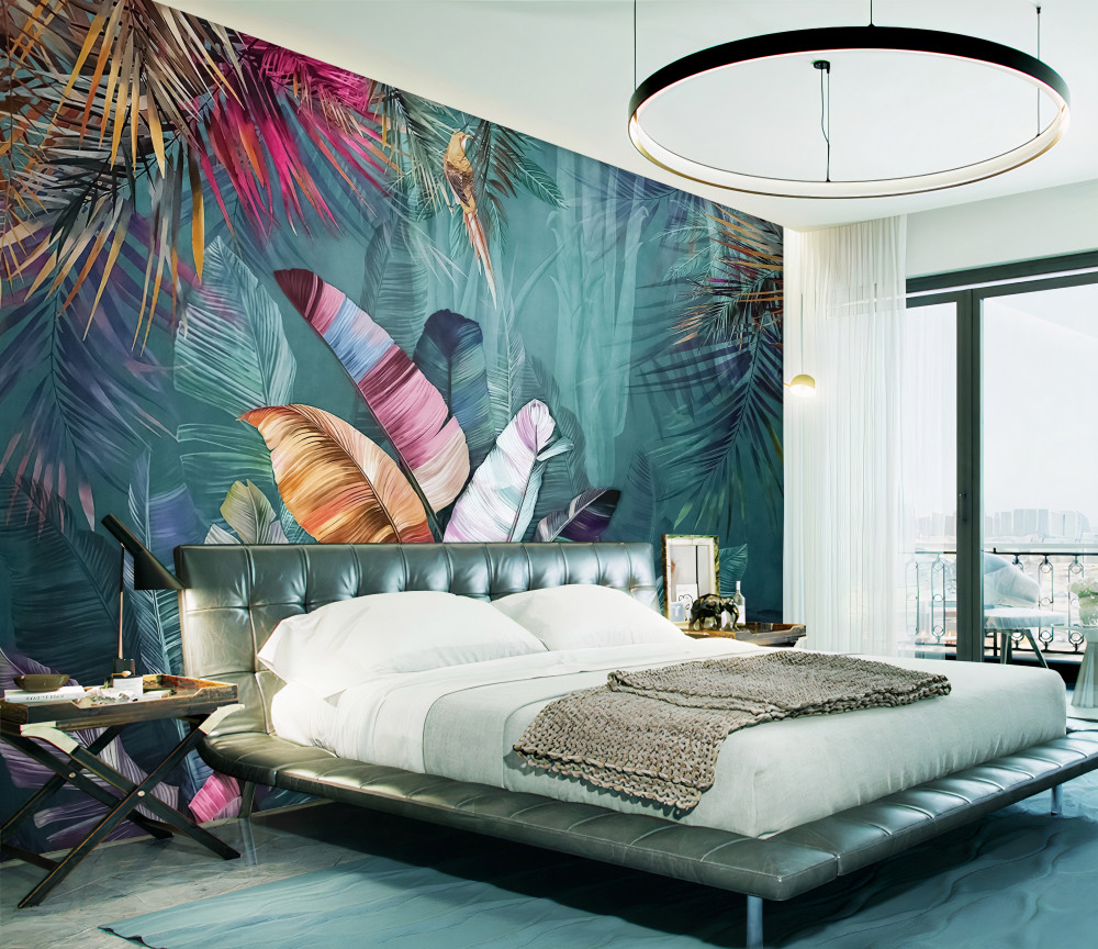 Tapeta Fototapeta jasna kompozycja tropikalnych jesiennych liści (artykuł a90863 ) z kategorii Fototapety 3D