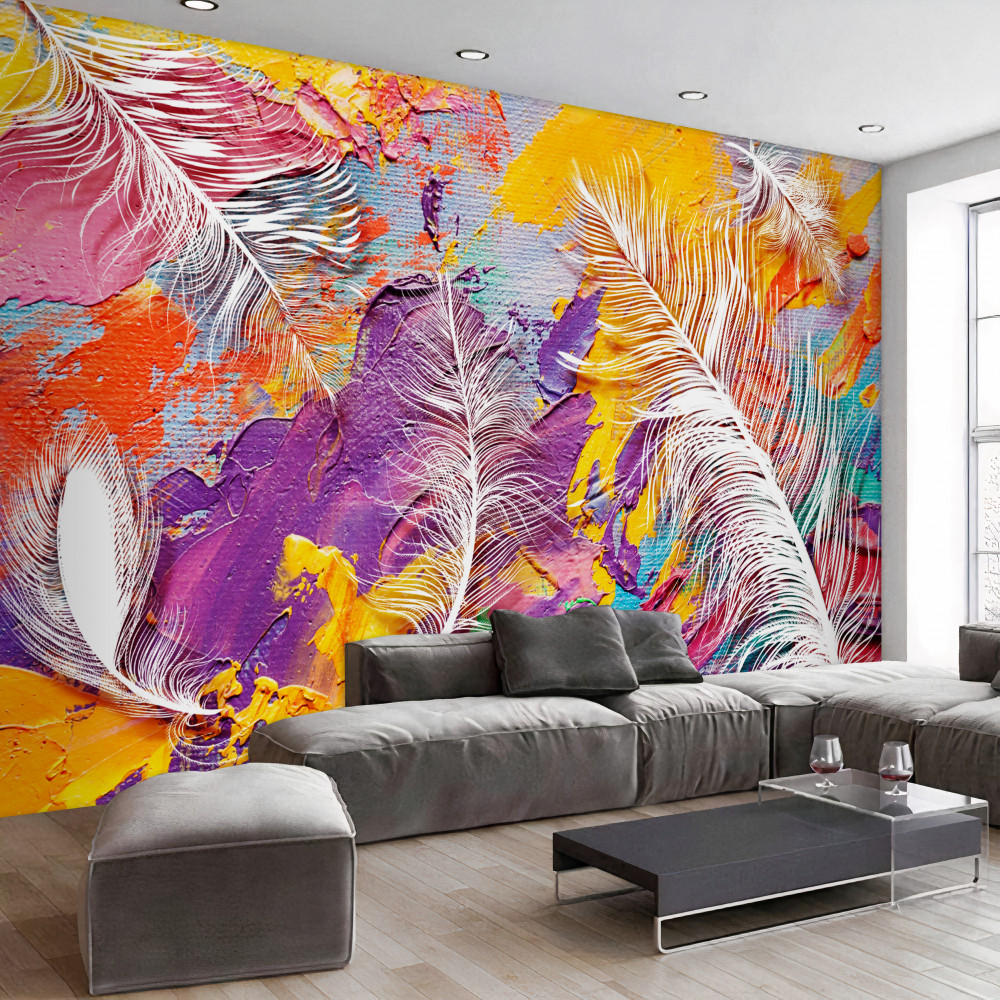 Tapeta Fototapeta jasne kolory i białe pióra (artykuł a92897 ) z kategorii Fototapety 3D