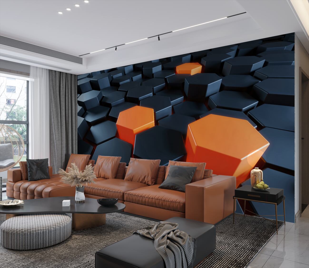 Tapeta Fototapeta Jasne -oranżowe cylindry wśród niebieskiego (artykuł u10256 ) z kategorii Fototapety 3D