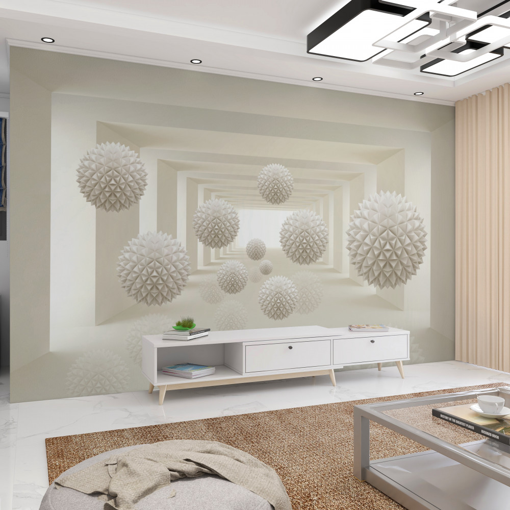 Tapeta Fototapeta jasnoróżowe kulki i niekończący się tunel (artykuł a91127 ) z kategorii Fototapety 3D