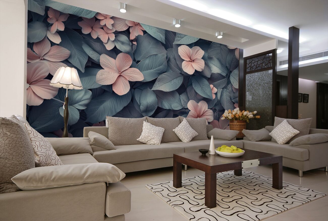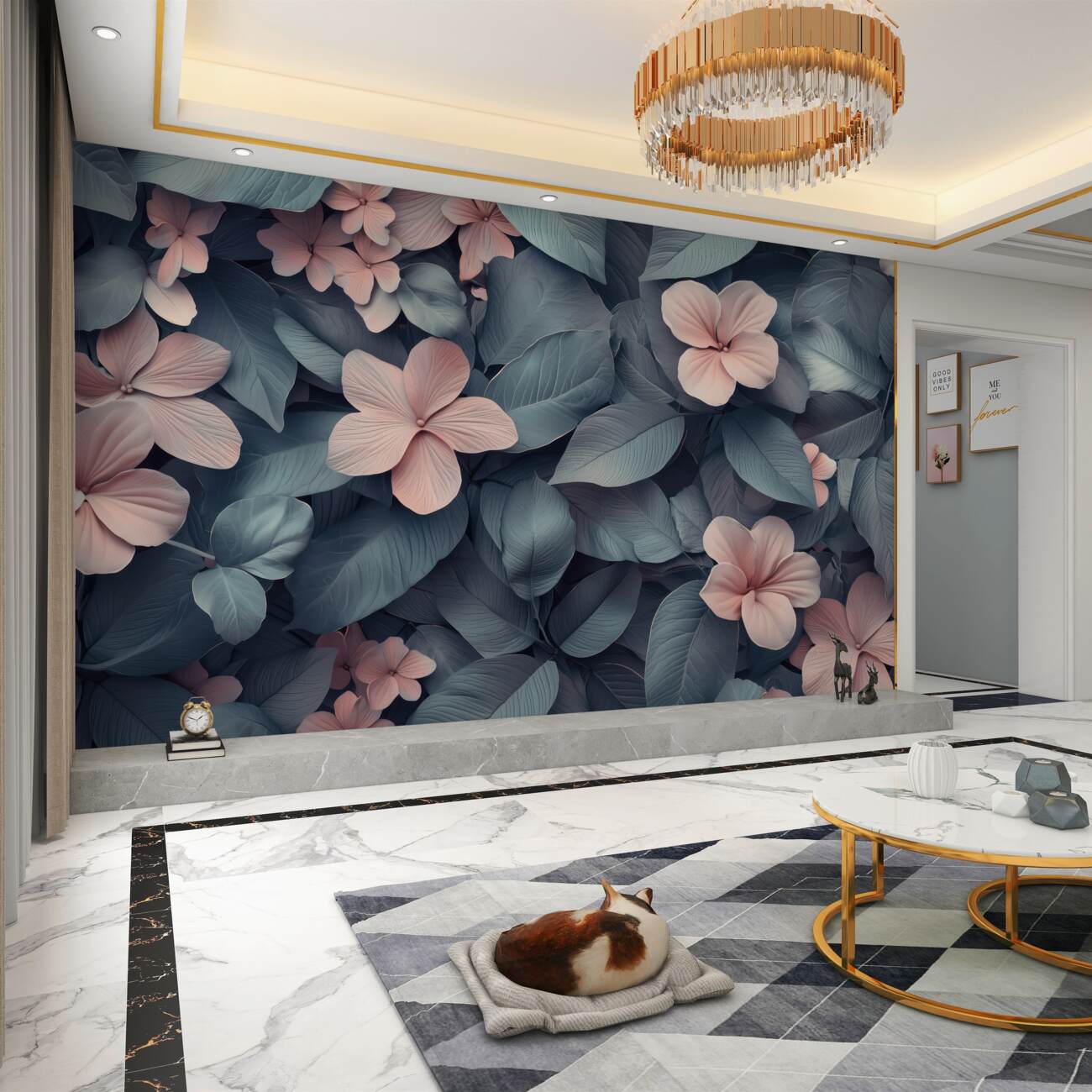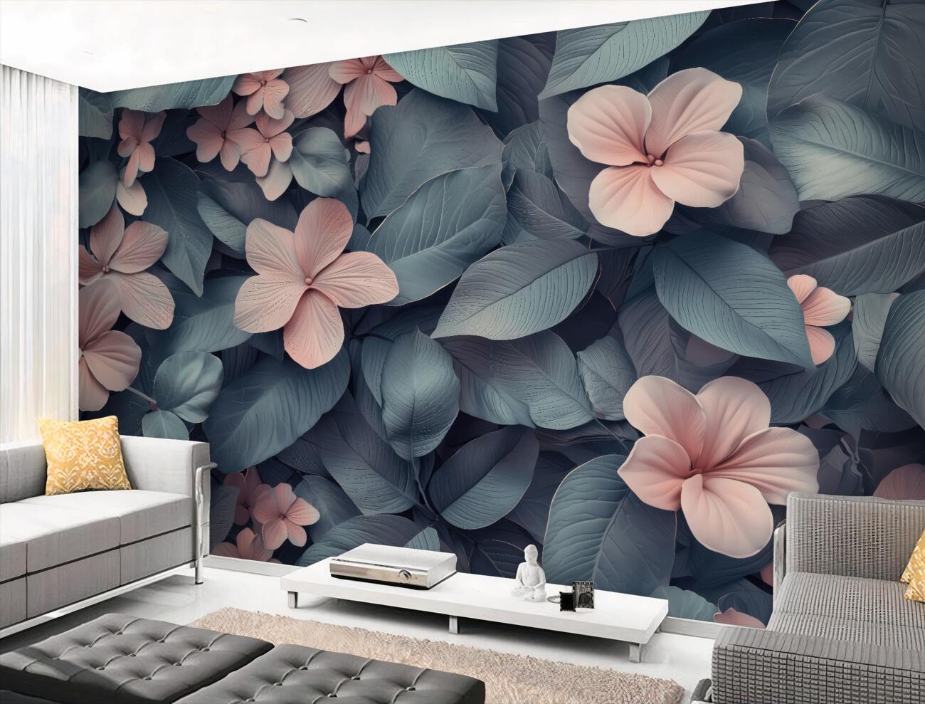 Tapeta Fototapeta Jasnoróżowe kwiaty na zielonych łodygach (artykuł u11092 ) z kategorii Fototapety 3D