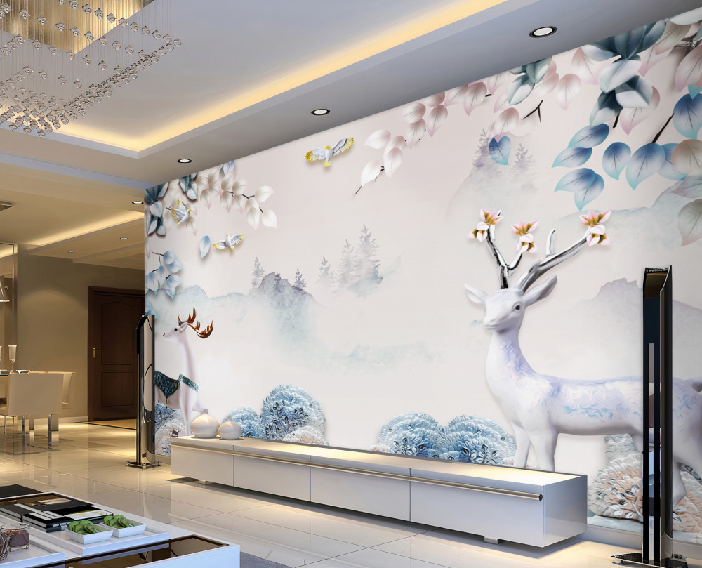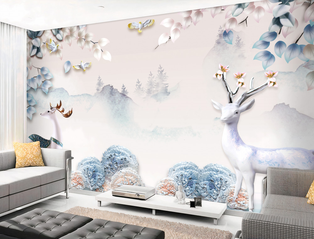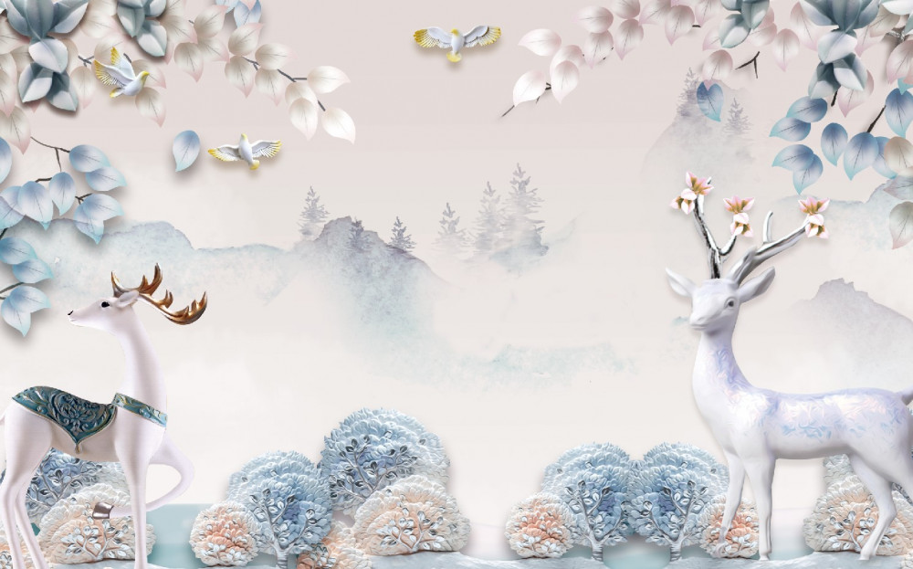 Tapeta Fototapeta jeleń spaceruje w gęstej mgle (artykuł pb1115 ) z kategorii Fototapety 3D