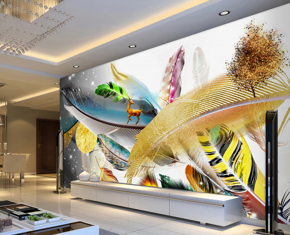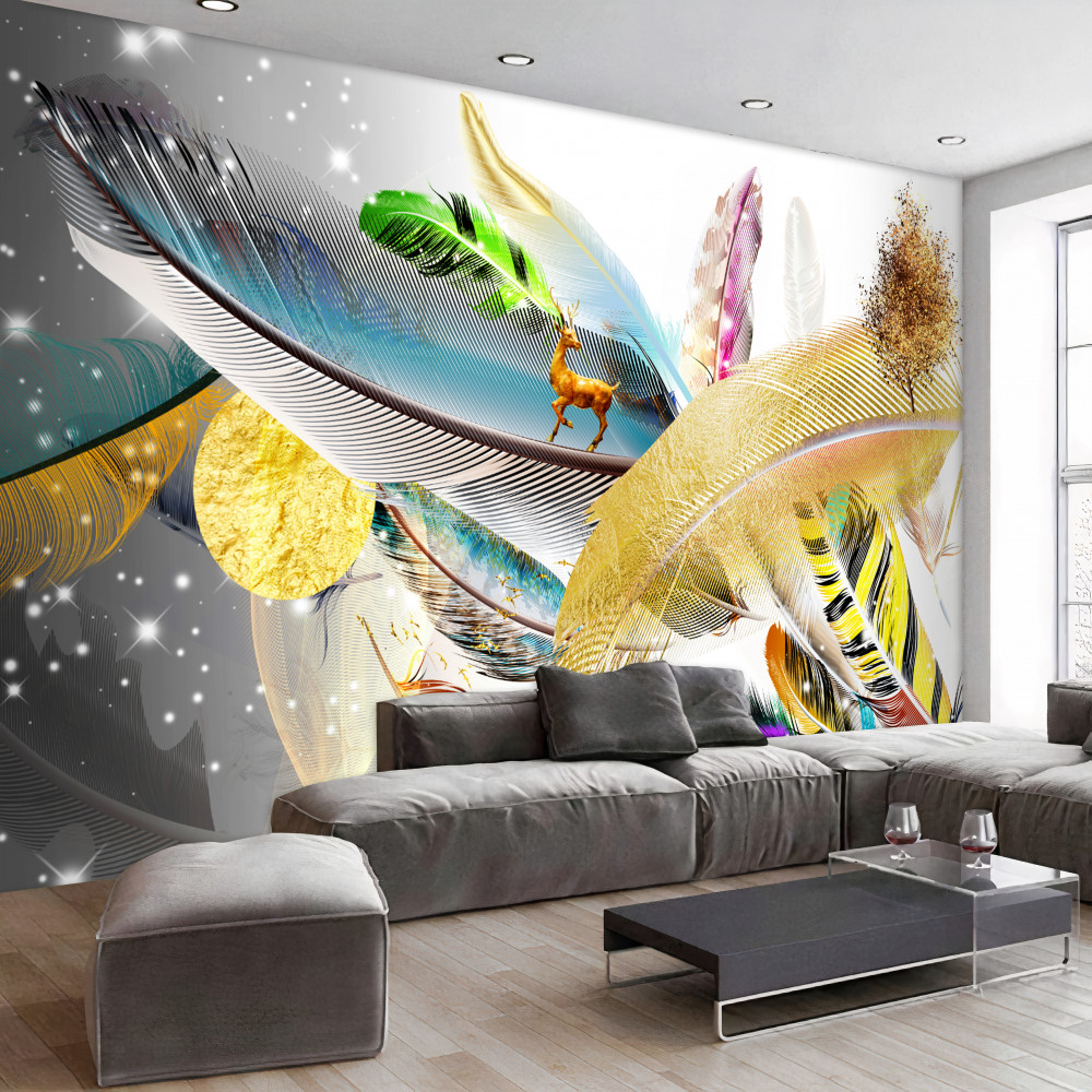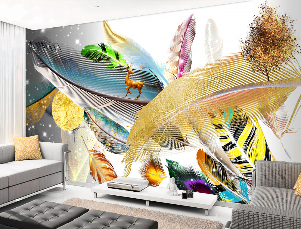 Tapeta Fototapeta jeleń wśród kolorowych piór (artykuł a91870 ) z kategorii Fototapety 3D