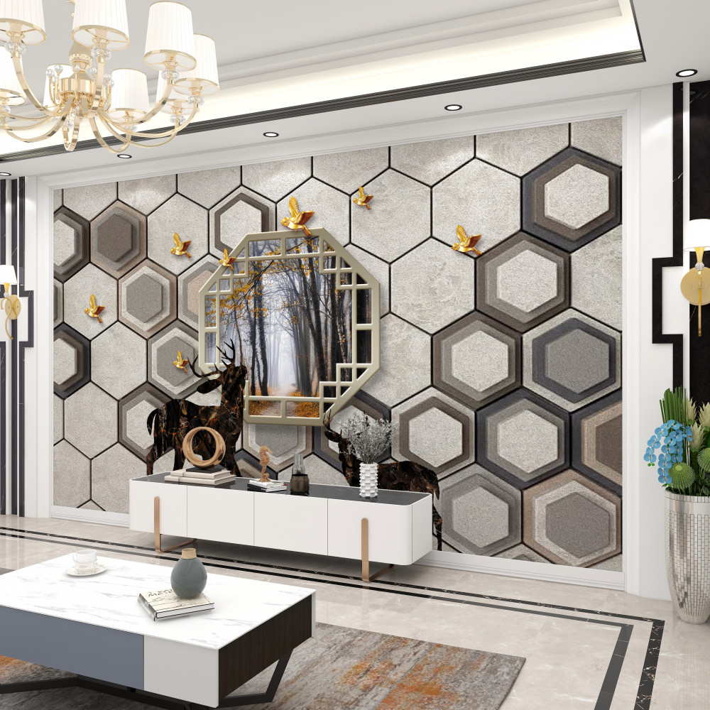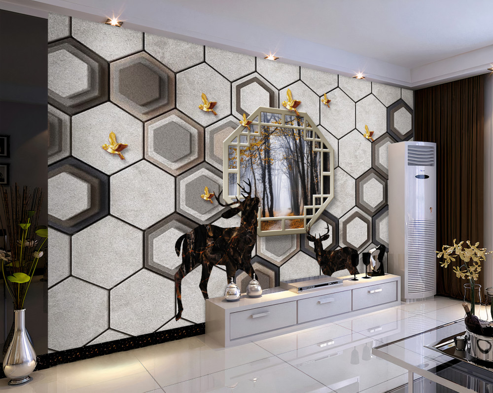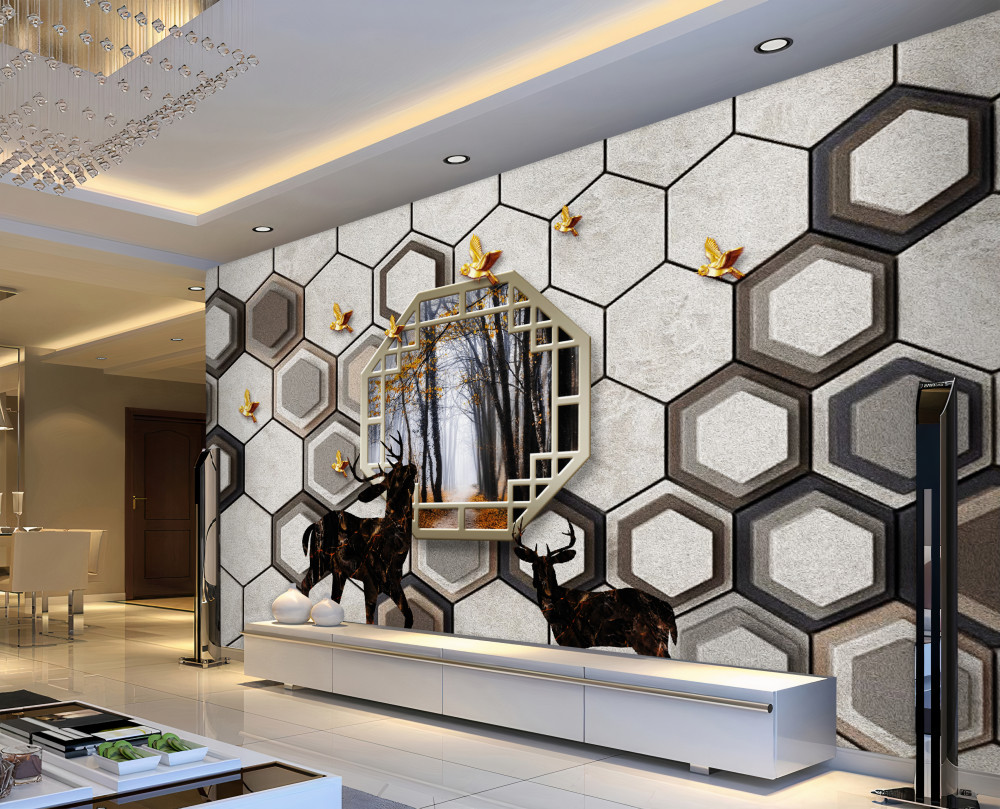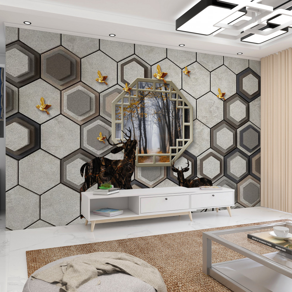 Tapeta Fototapeta jelenie na tle mozaiki w pobliżu lasu (artykuł pb7821 ) z kategorii Fototapety 3D
