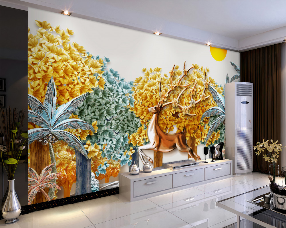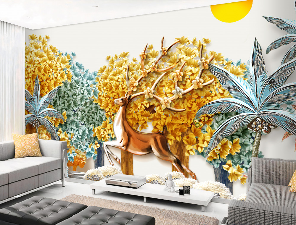 Tapeta Fototapeta jelenie skaczące w tropikalnej dżungli (artykuł pb6672 ) z kategorii Fototapety 3D