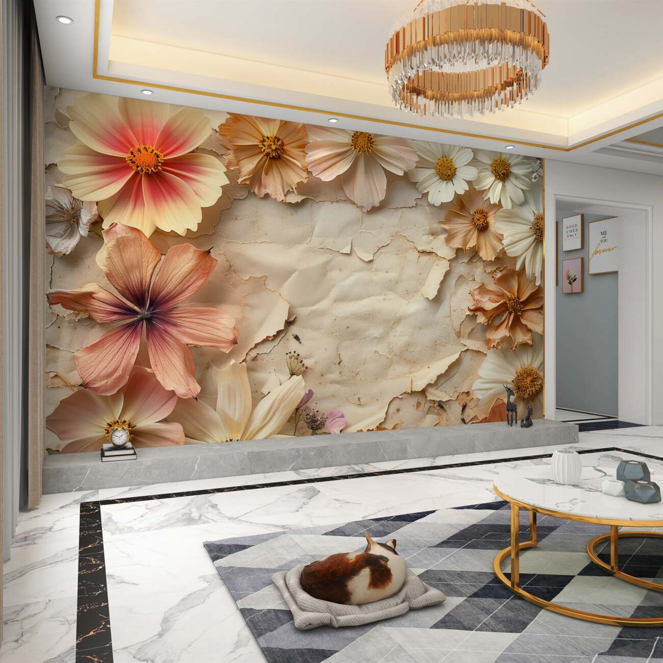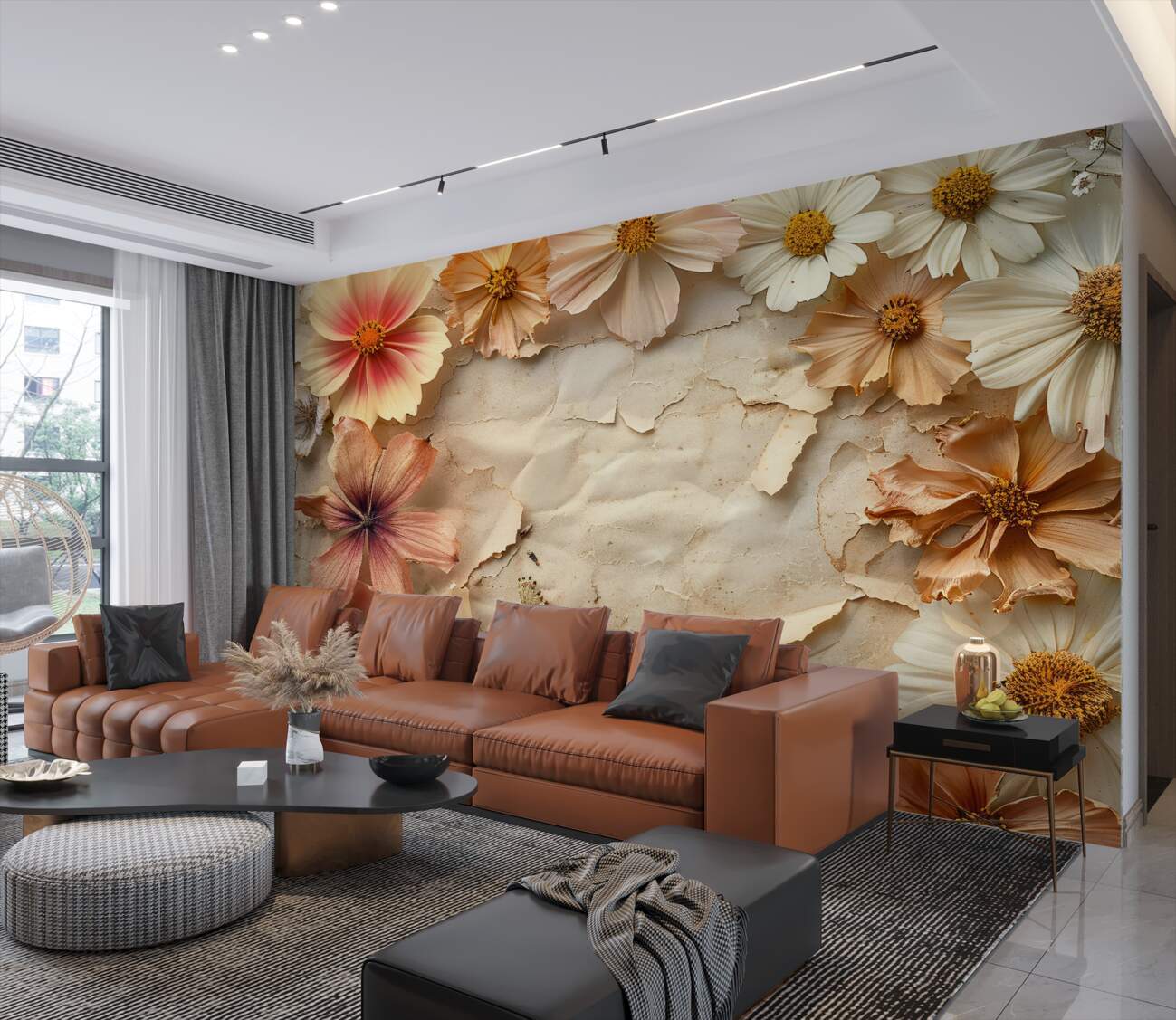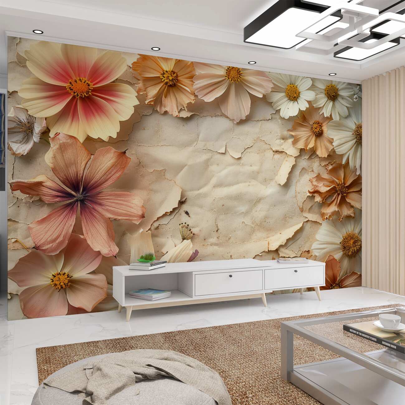 Tapeta Fototapeta Jesienne jasne kwiaty w ornamencie (artykuł u10889 ) z kategorii Fototapety 3D