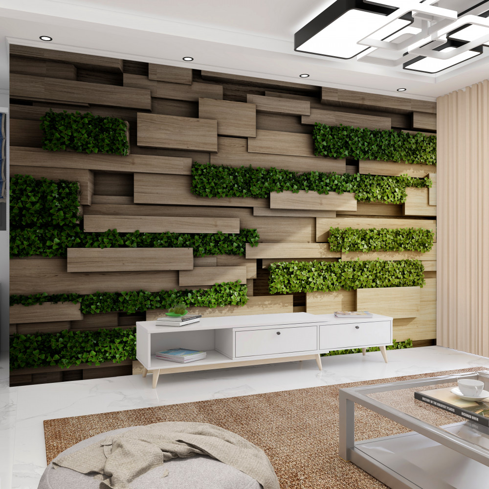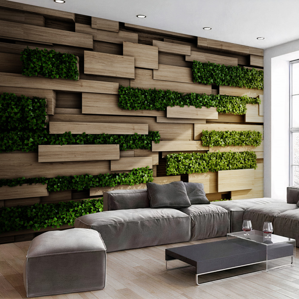Tapeta Fototapeta kamienny mur z zielonymi przestrzeniami (artykuł a90938 ) z kategorii Fototapety 3D