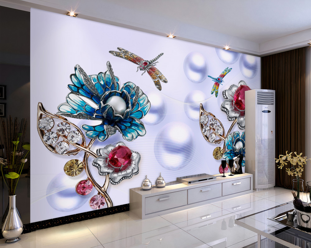 Tapeta Fototapeta klejnoty na kwiatach i ważkach (artykuł pb5603 ) z kategorii Fototapety 3D