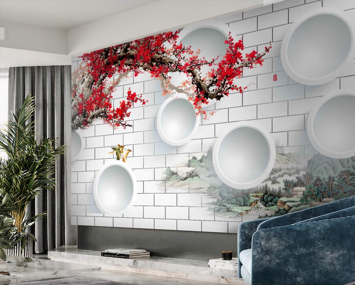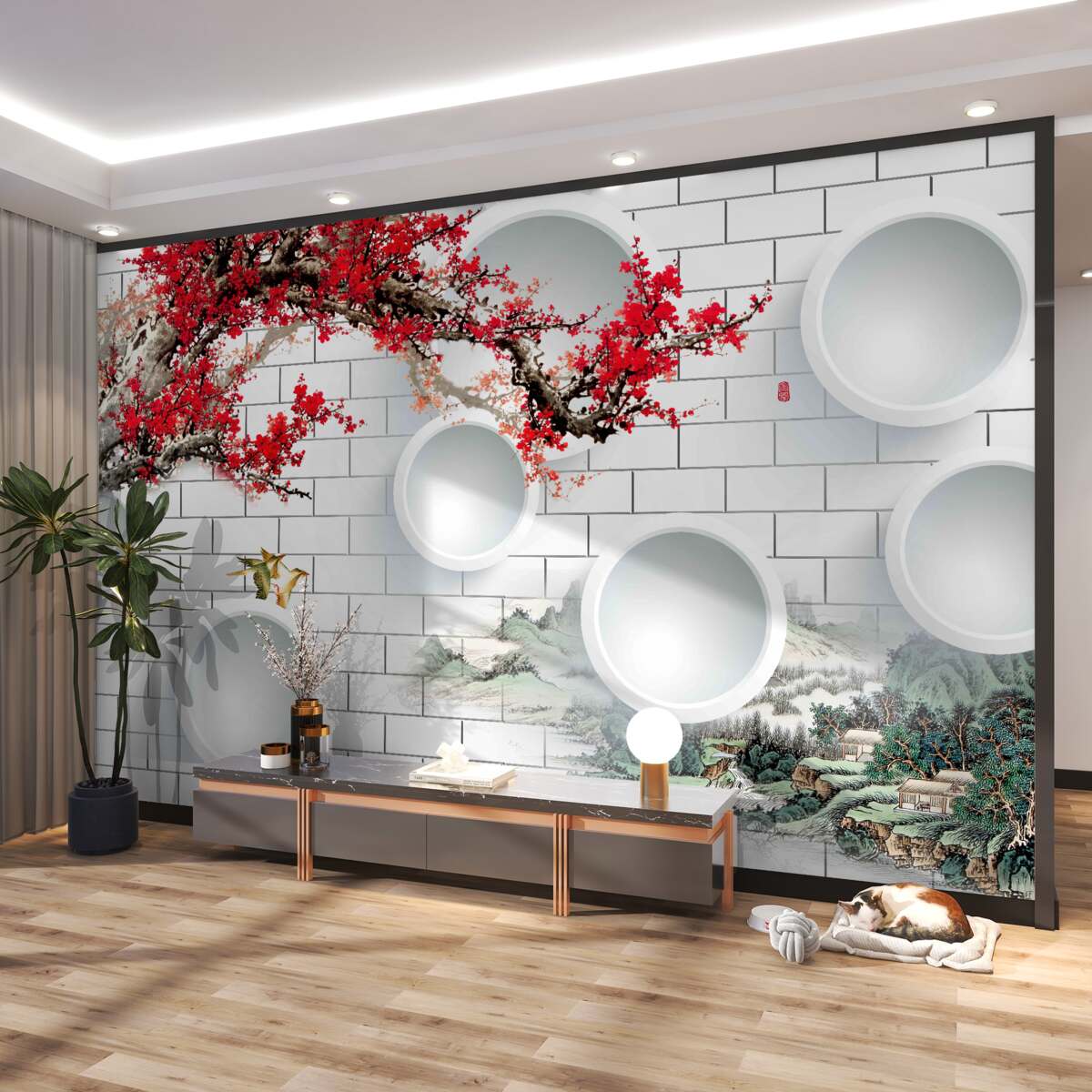 Tapeta Fototapeta Koła geometryczne i krajobraz (artykuł a98906 ) z kategorii Fototapety 3D