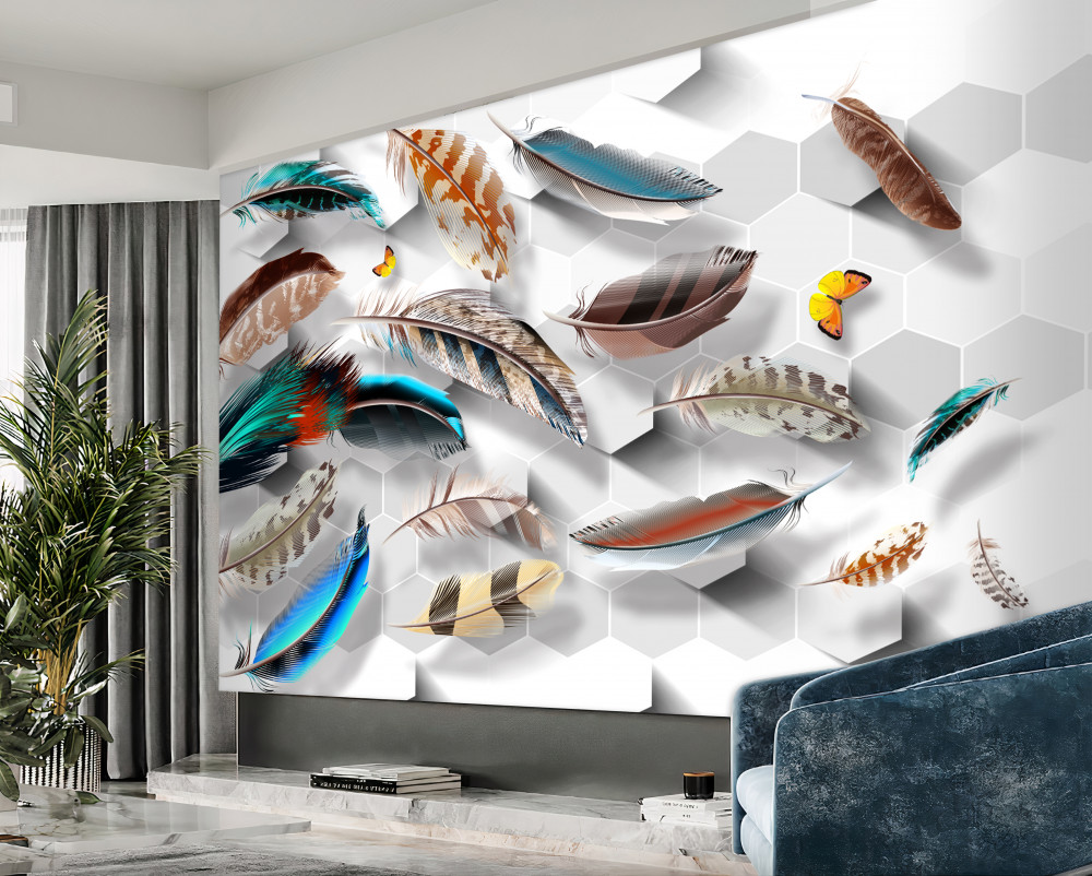 Tapeta Fototapeta kolekcja ozdobnych piór (artykuł pb3362 ) z kategorii Fototapety 3D