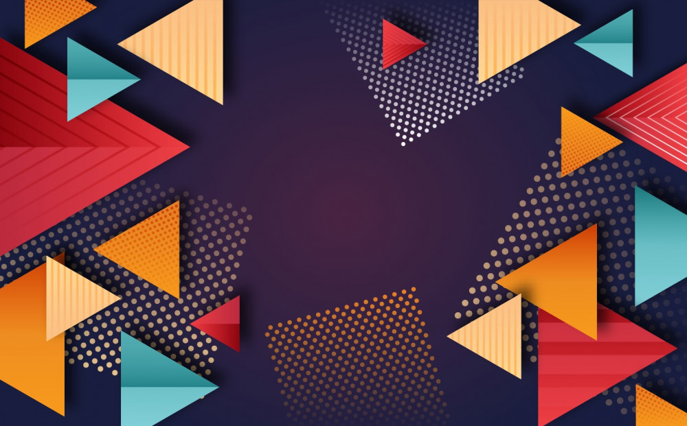 Fototapeta kolorowe trójkąty na fioletowym tle