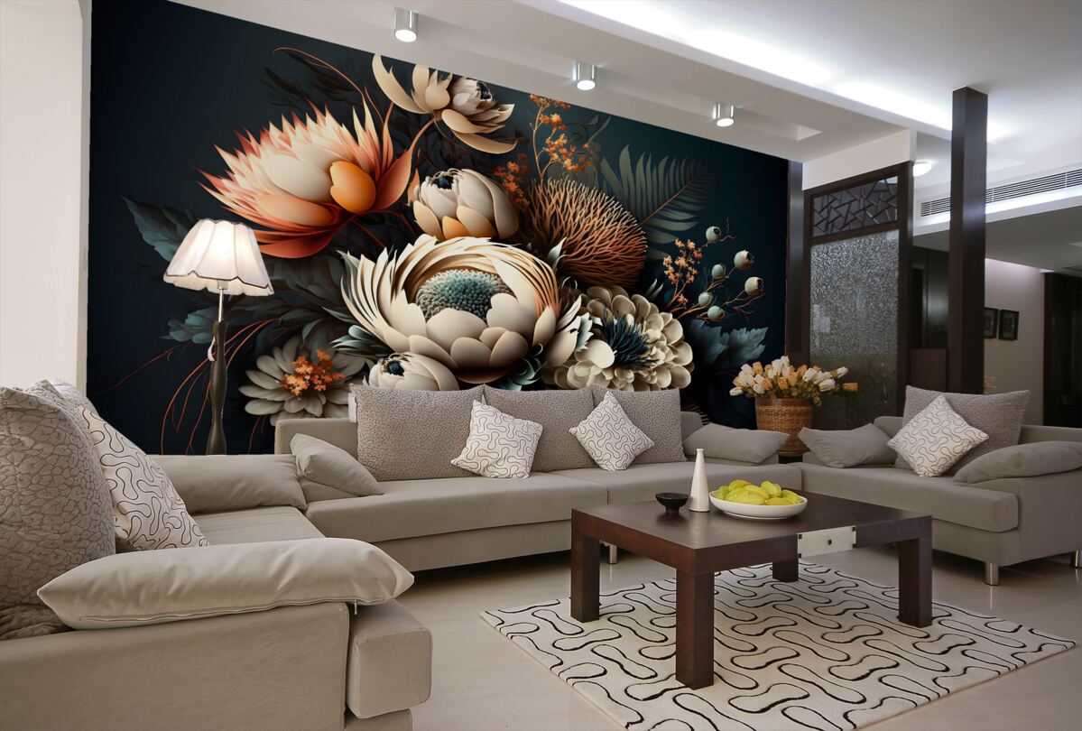 Tapeta Fototapeta Kompozycja jesiennych kwiatów (artykuł a98456 ) z kategorii Fototapety 3D