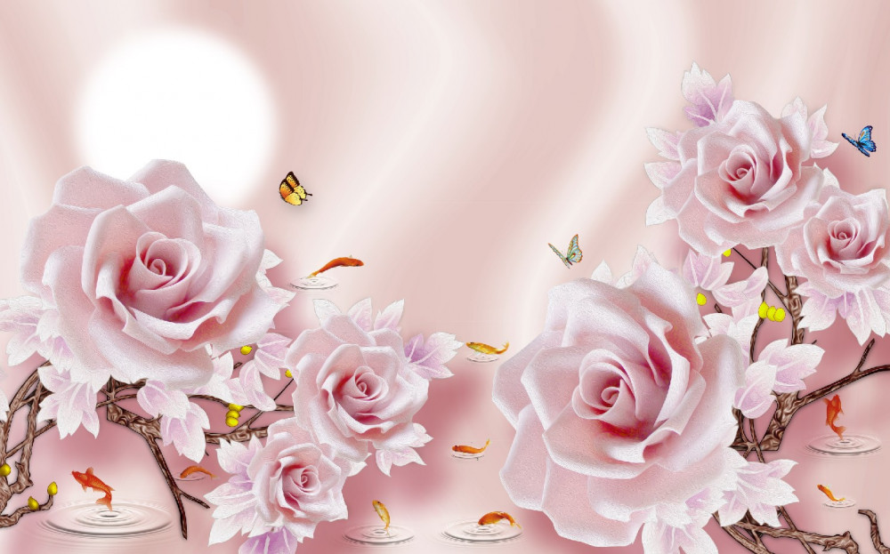 Tapeta Fototapeta kompozycja pączków róż na różowym jedwabiu (artykuł pb10035 ) z kategorii Fototapety 3D