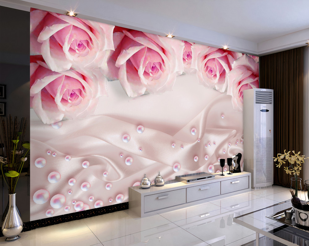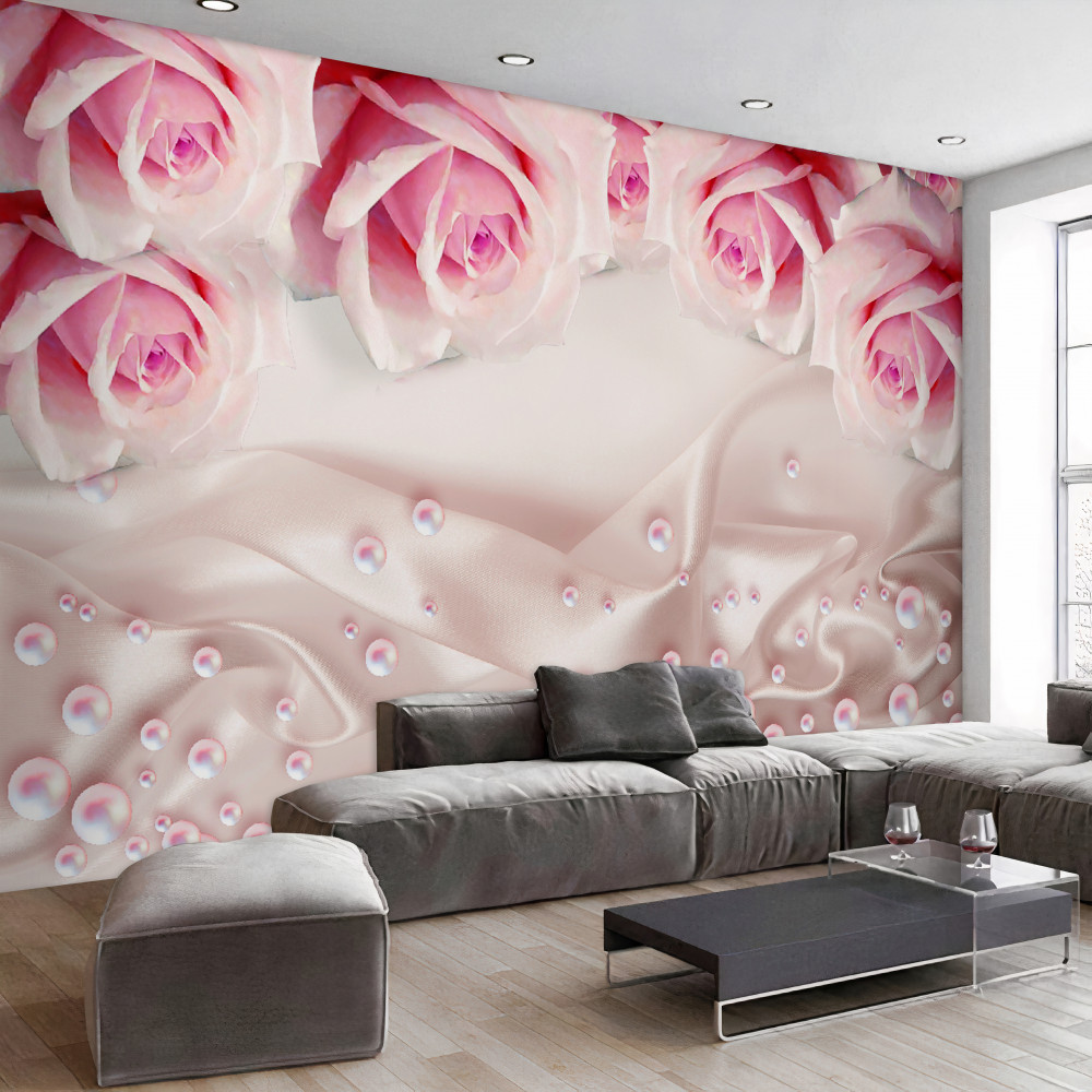 Tapeta Fototapeta kompozycja różowych jedwabnych róż i koralików (artykuł pb10021 ) z kategorii Fototapety 3D