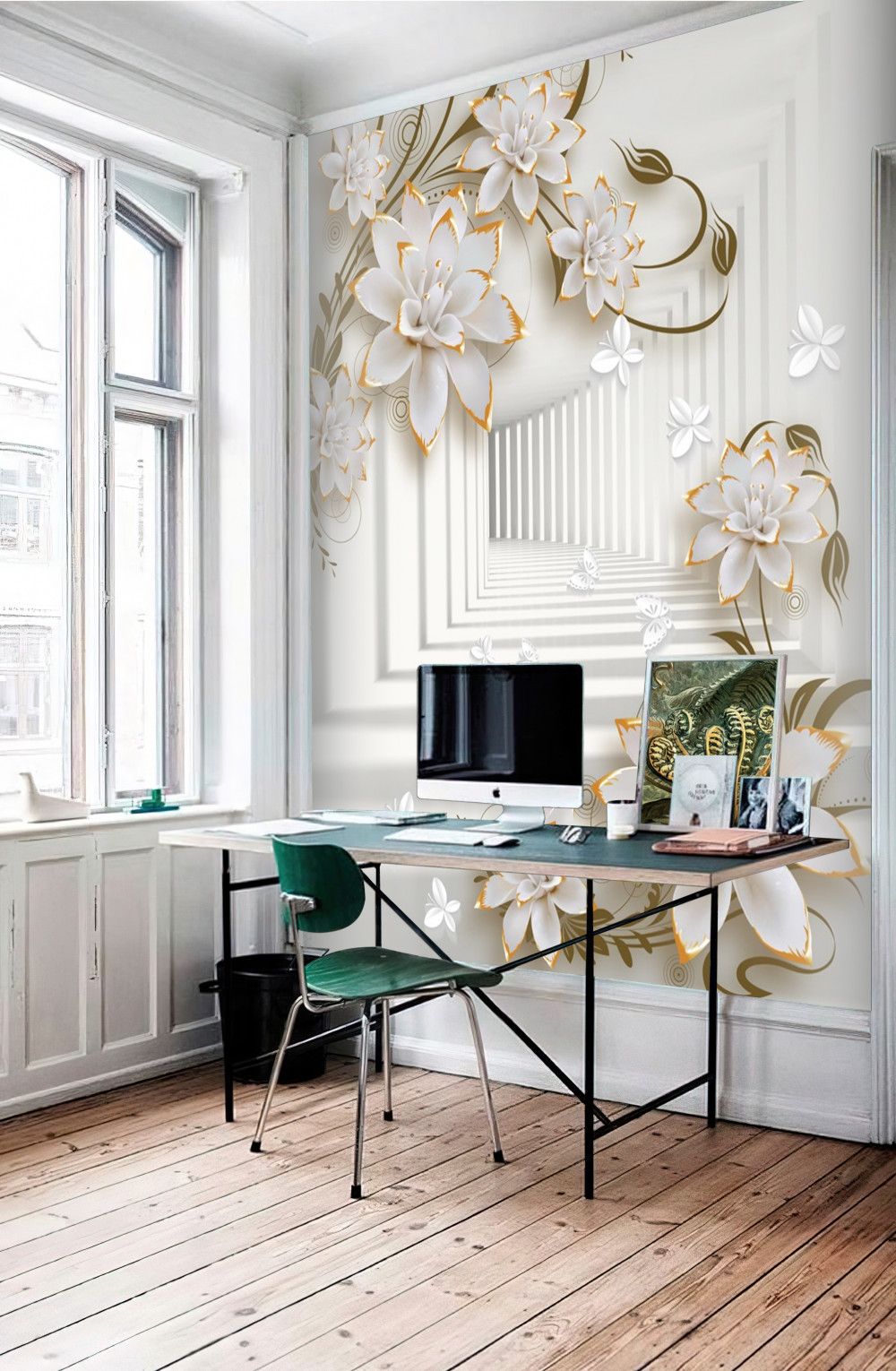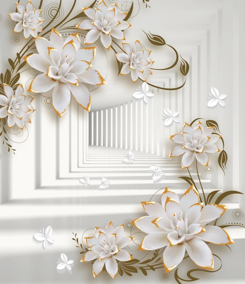 Tapeta Fototapeta korytarz wyjściowy w kwiatach lotosu (artykuł a93525 ) z kategorii Fototapety 3D