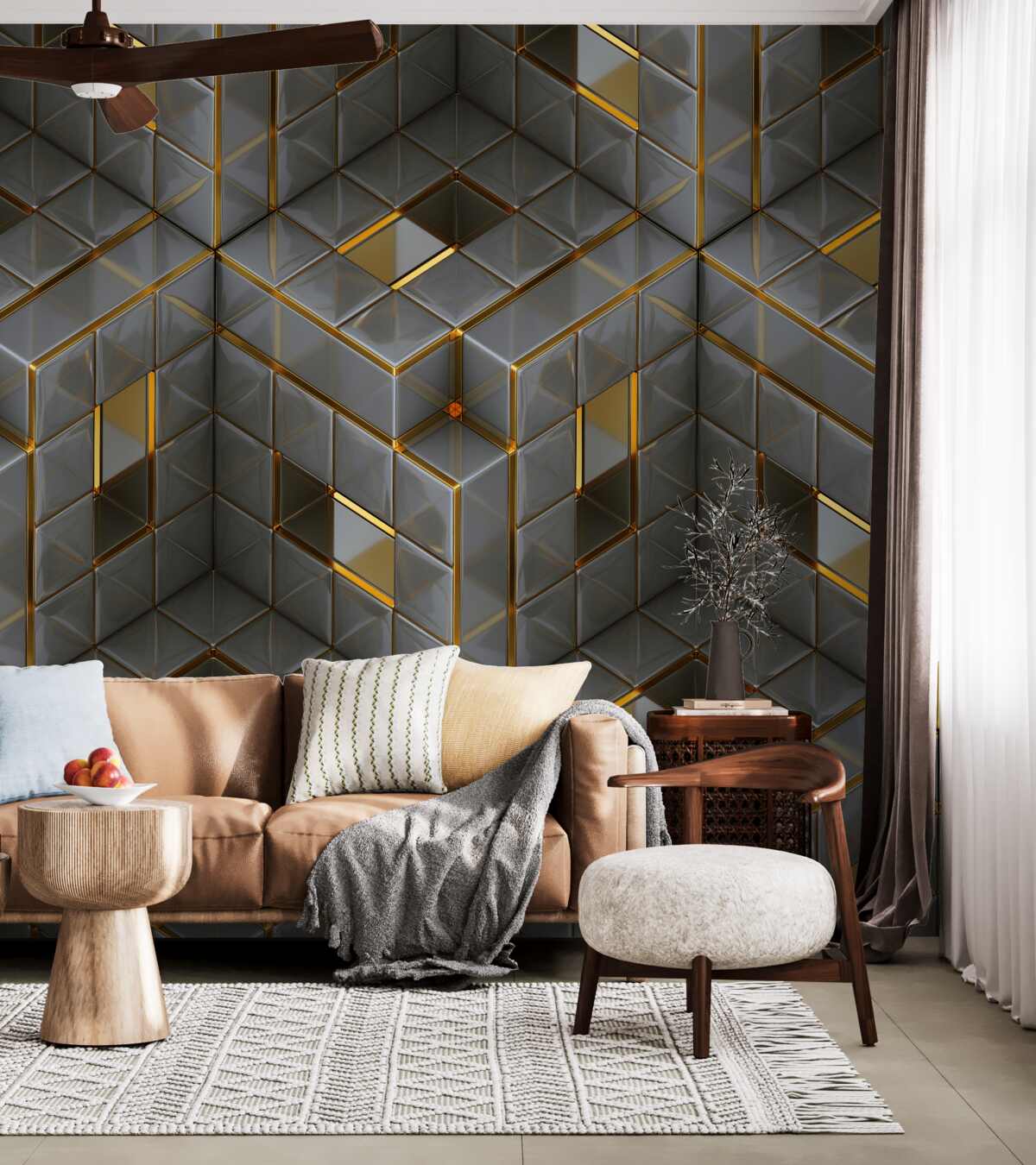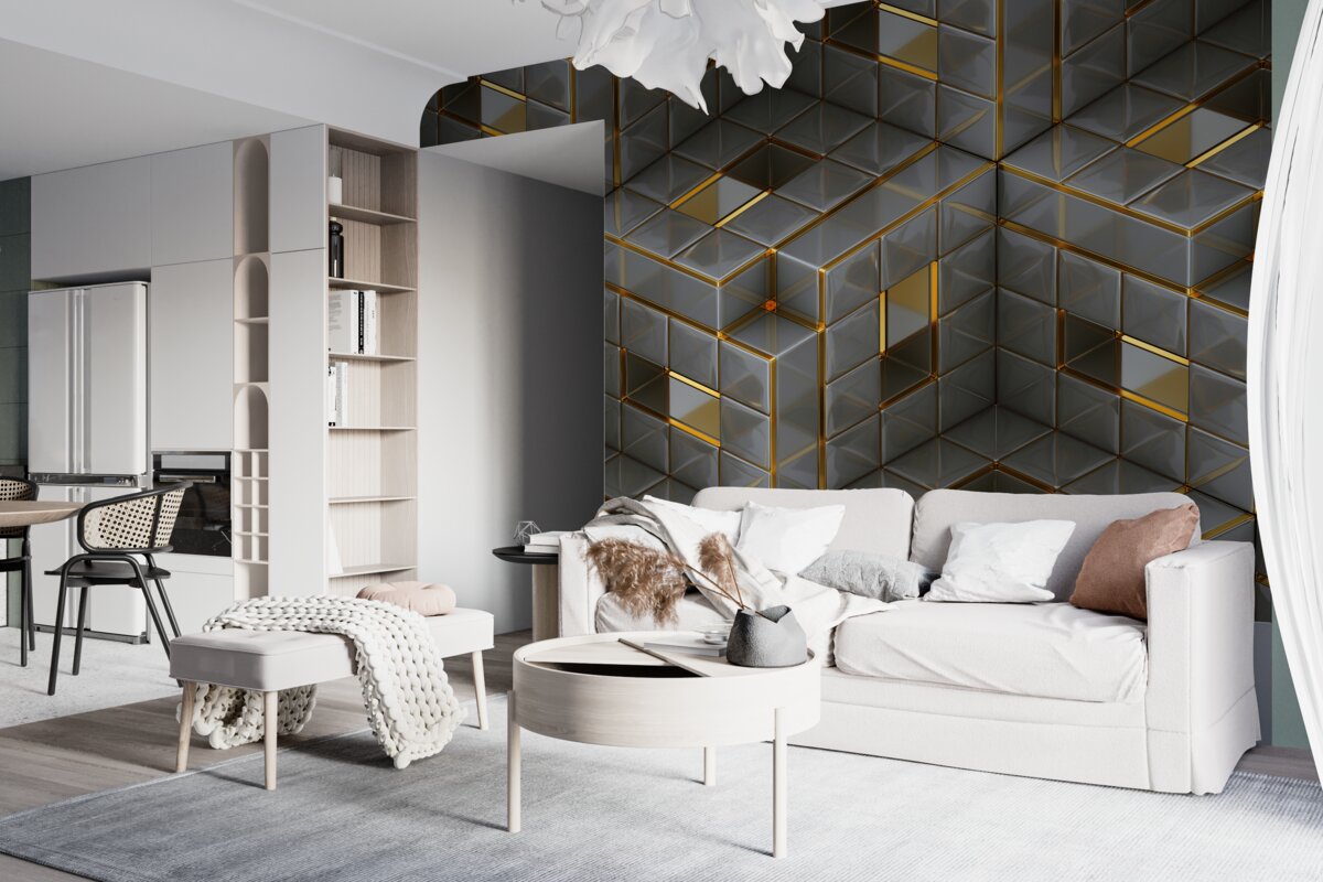 Tapeta Fototapeta Kostki wolumetryczne 3D ze złotymi wstawkami (artykuł a98562 ) z kategorii Fototapety 3D