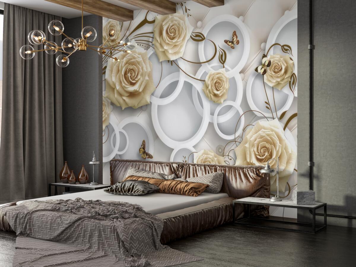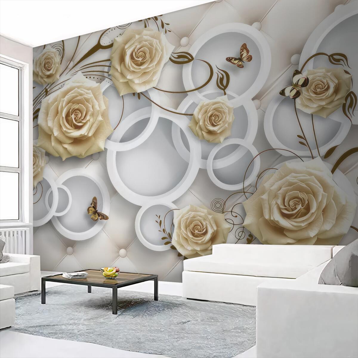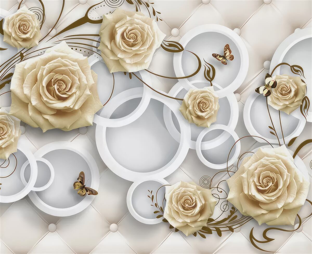 Tapeta Fototapeta Kremowe róże i motyle (artykuł a97764 ) z kategorii Fototapety 3D