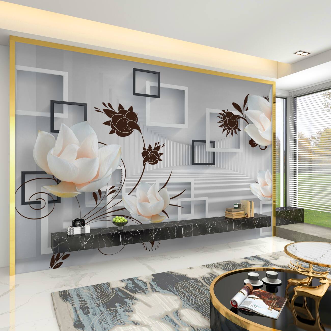 Tapeta Fototapeta Kwadraty objętościowe i kwitnące pąki (artykuł a100194 ) z kategorii Fototapety 3D