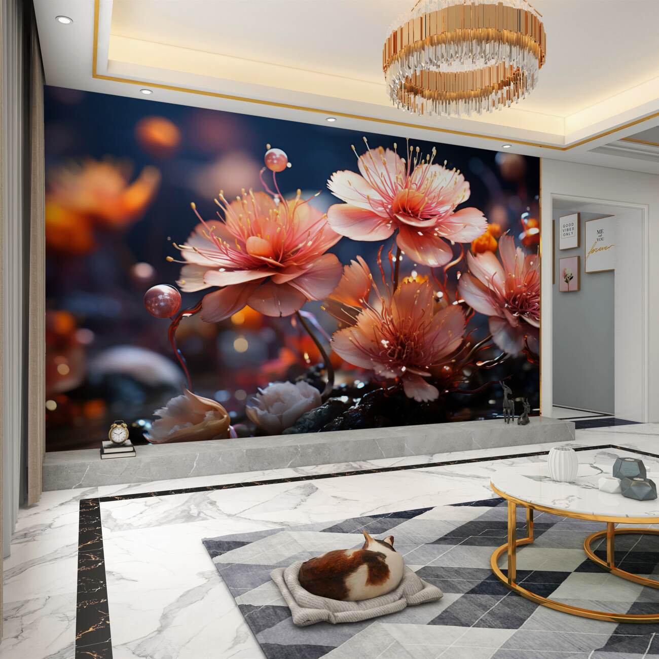 Tapeta Fototapeta Kwiaty 3D w Rosie rano (artykuł u10938 ) z kategorii Fototapety 3D