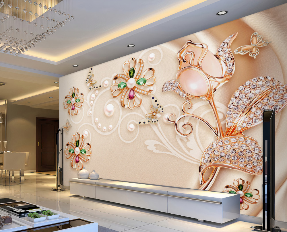 Tapeta Fototapeta kwiaty i liście wykonane z kamieni szlachetnych (artykuł a89993 ) z kategorii Fototapety 3D
