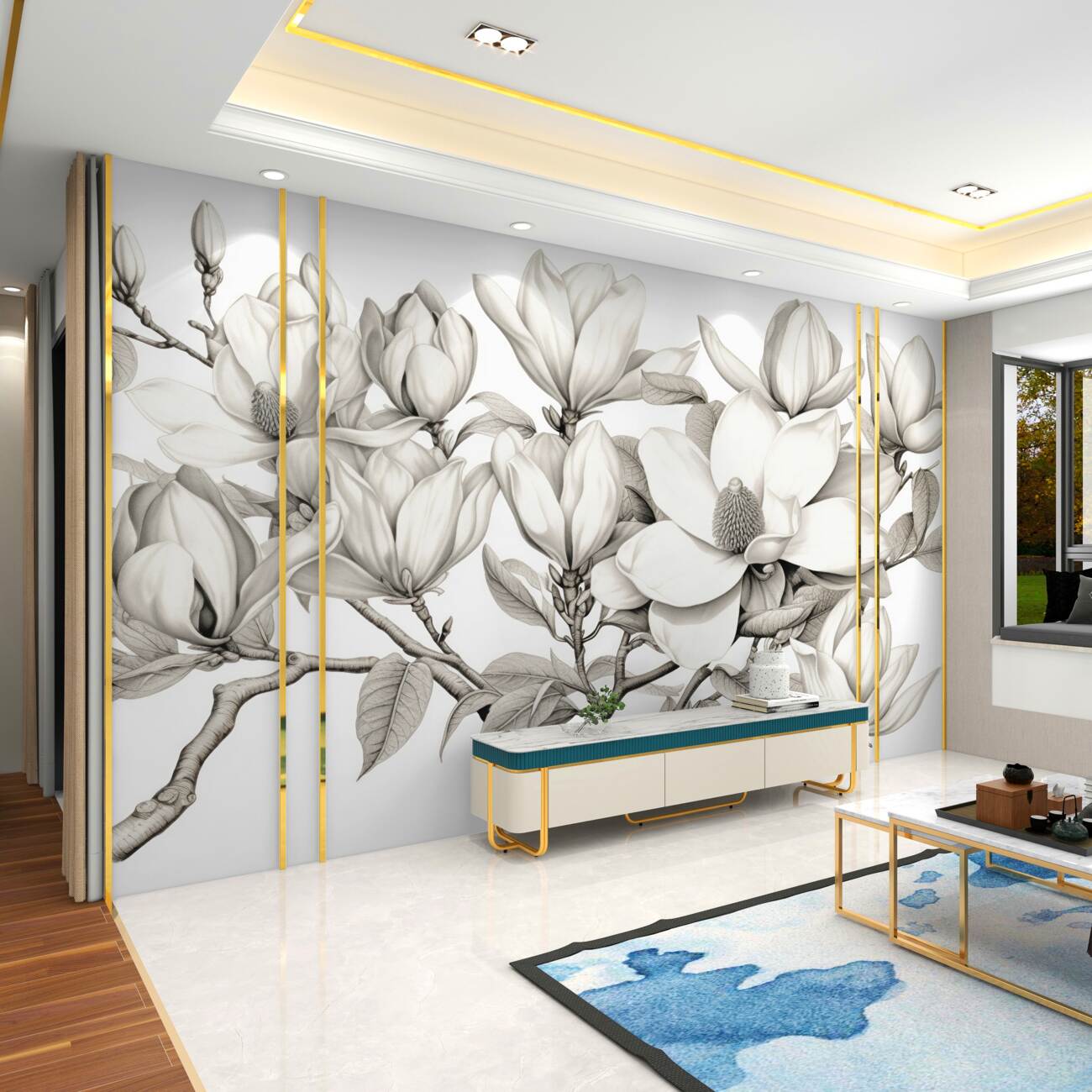 Tapeta Fototapeta Kwiaty magnolia czarne -białe (artykuł u11667 ) z kategorii Fototapety 3D