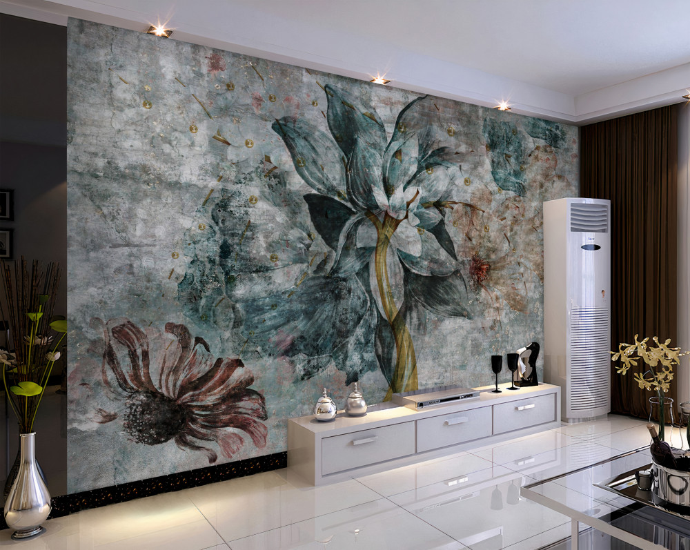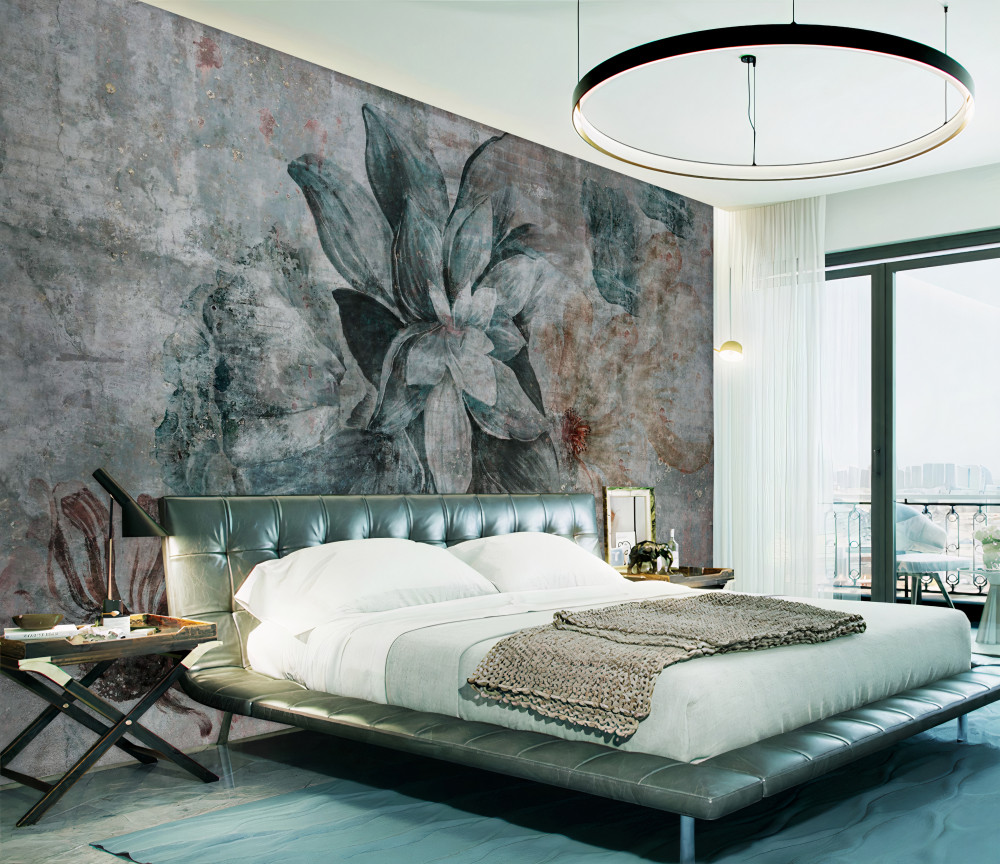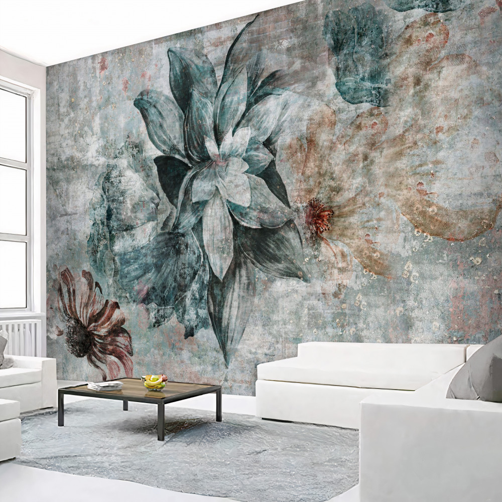 Tapeta Fototapeta kwiaty na cementowej ścianie (artykuł a93782 ) z kategorii Fototapety 3D