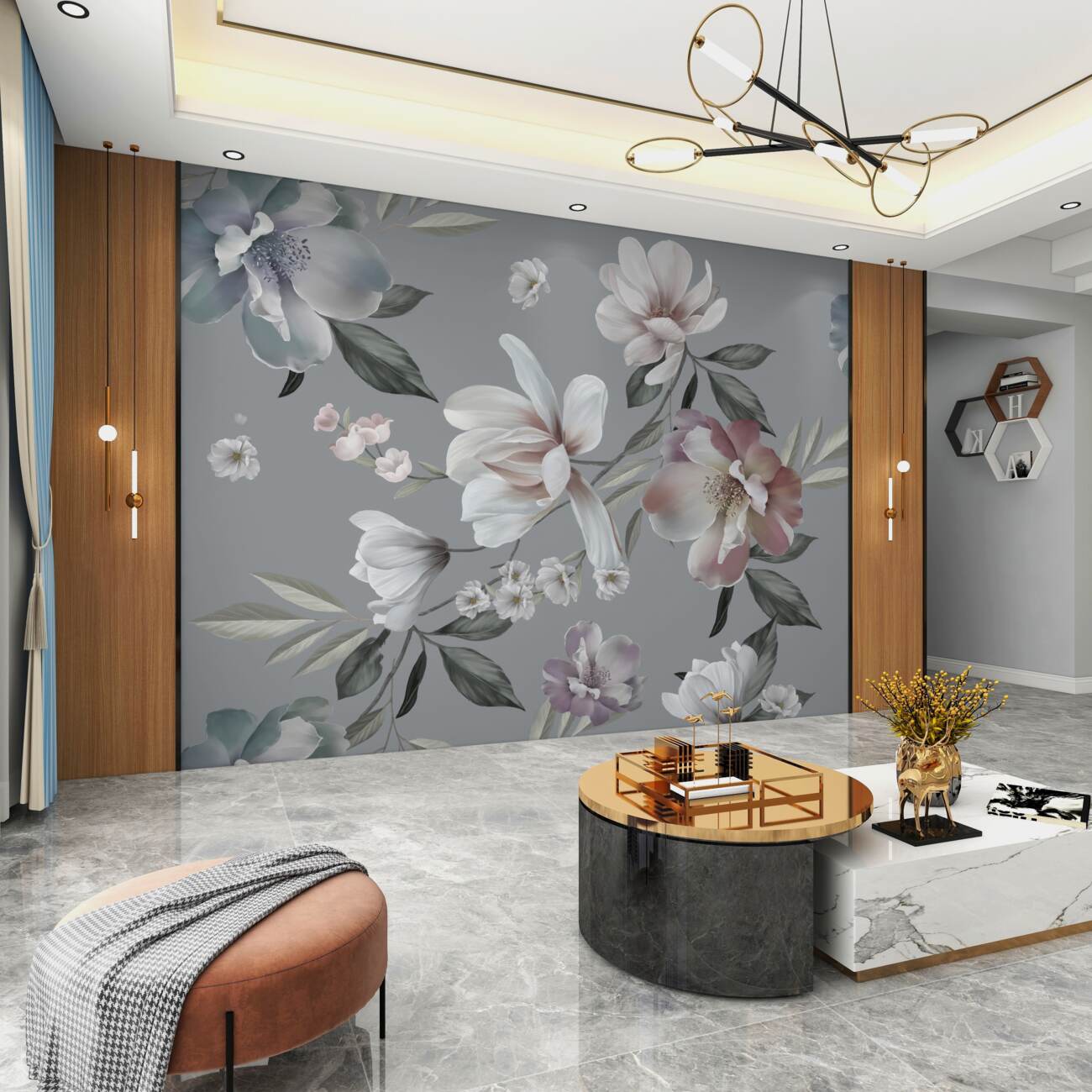 Tapeta Fototapeta Kwiaty na gałęziach na szarym tle (artykuł u10846 ) z kategorii Fototapety 3D