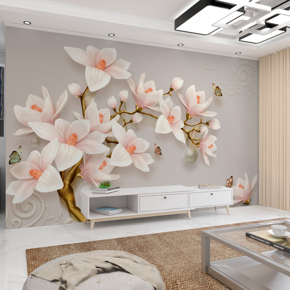 Tapeta Fototapeta kwiaty na złotej gałęzi (artykuł a91125 ) z kategorii Fototapety 3D