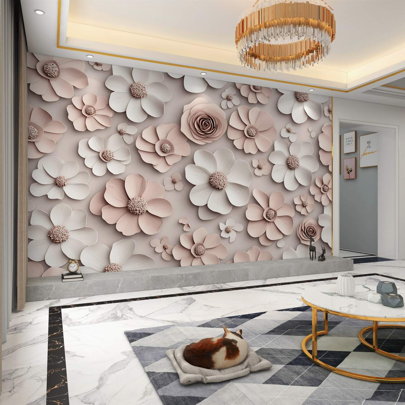Tapeta Fototapeta Kwiaty objętościowe na różowym tle (artykuł u11145 ) z kategorii Fototapety 3D