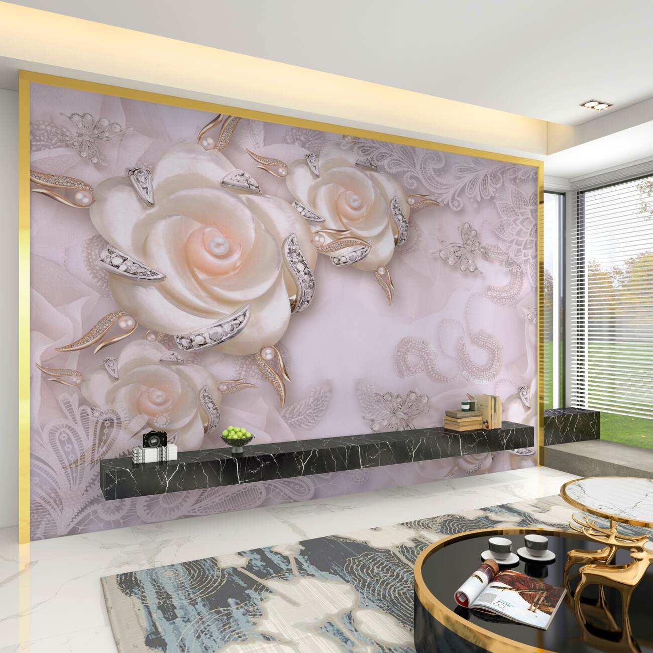 Tapeta Fototapeta Kwiaty perłowe z dekoracjami (artykuł a100191 ) z kategorii Fototapety 3D