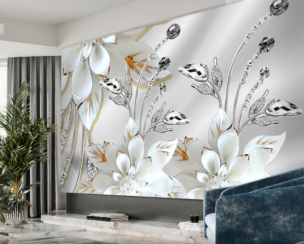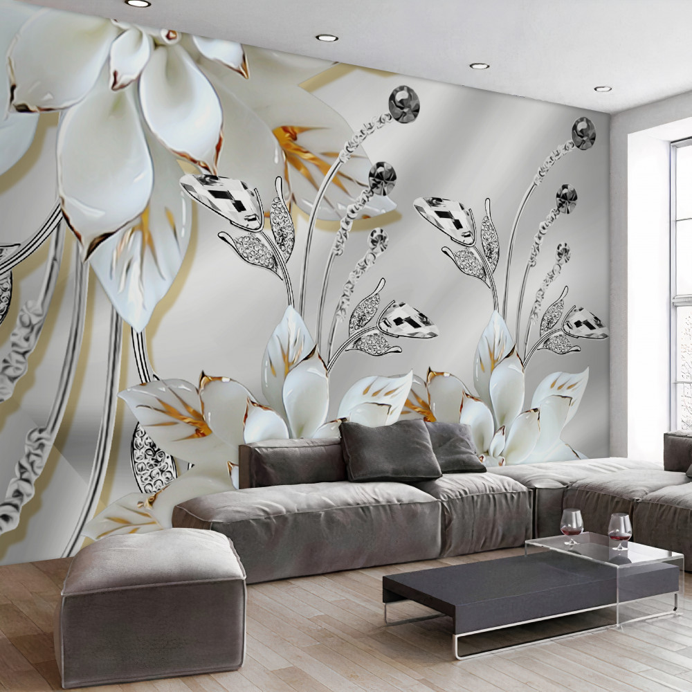 Tapeta Fototapeta kwiaty z białego złota z jedwabnymi dekoracjami (artykuł pb6677 ) z kategorii Fototapety 3D