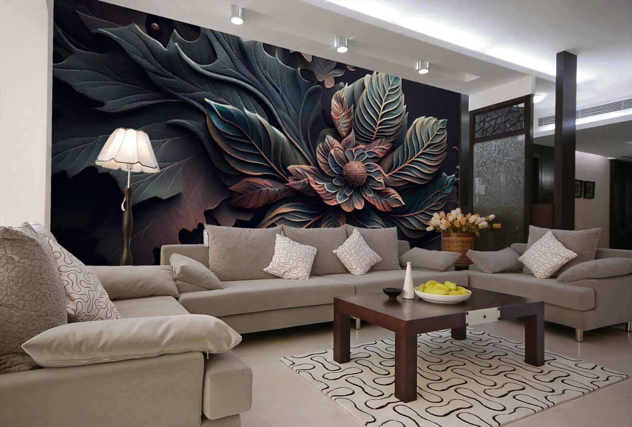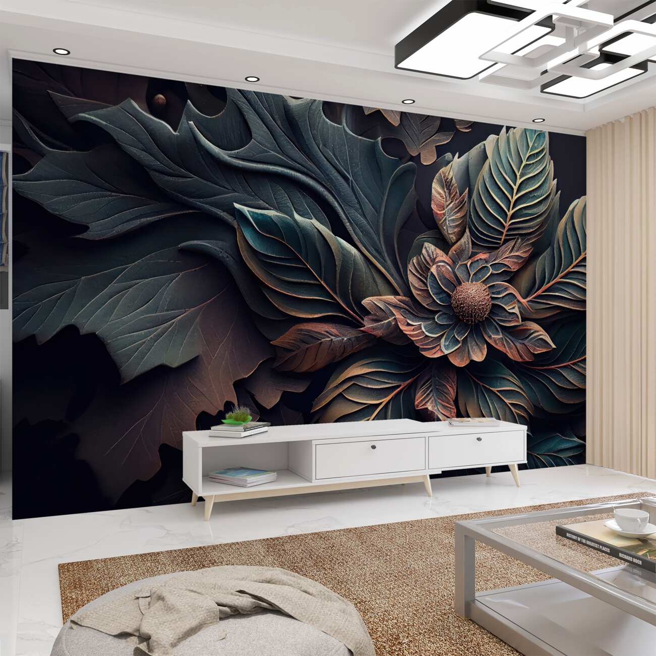 Tapeta Fototapeta Kwiaty z metalowymi płatkami (artykuł u10035 ) z kategorii Fototapety 3D