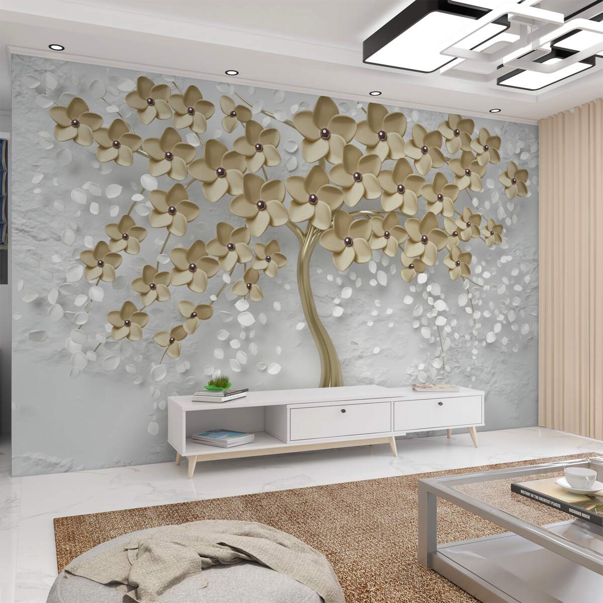 Tapeta Fototapeta Kwitnące złote drzewo (artykuł a98618 ) z kategorii Fototapety 3D
