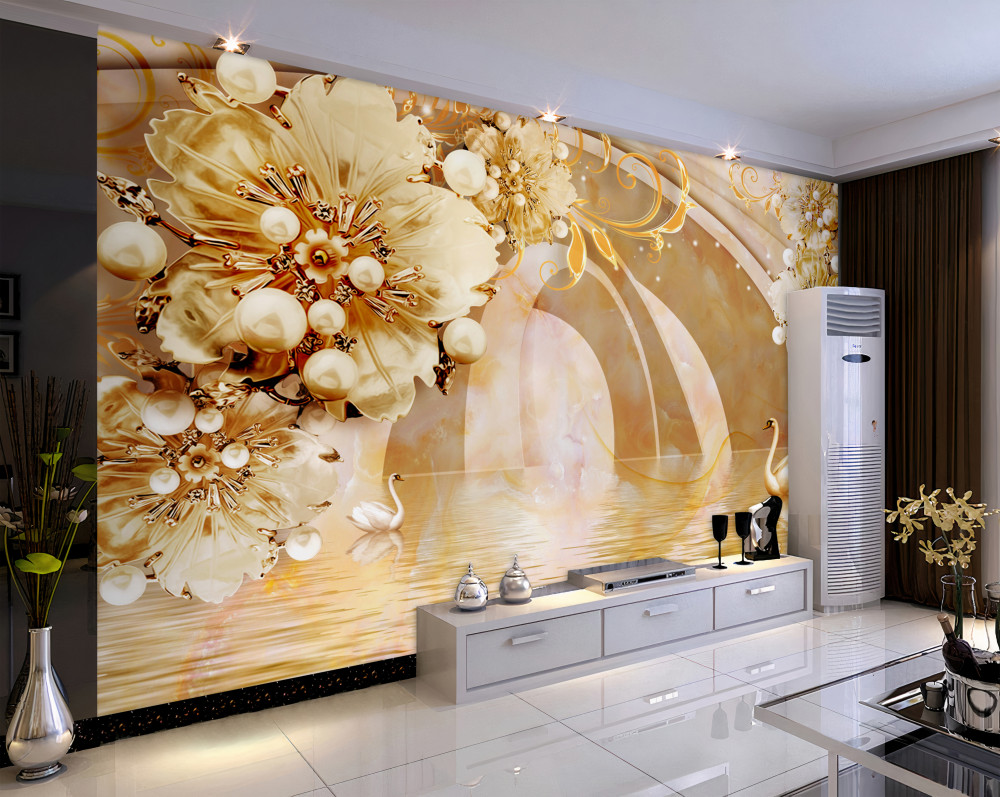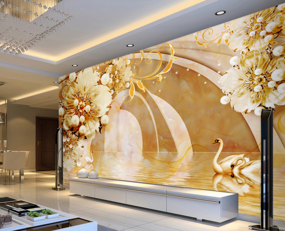 Tapeta Fototapeta łabędzie na wodzie w brązowych odcieniach i kolorach (artykuł a90078 ) z kategorii Fototapety 3D