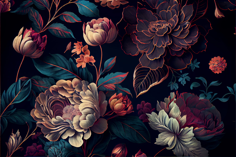 Tapeta Fototapeta ładne połączenie ciemnych kwiatów (artykuł a88349 ) z kategorii Fototapety 3D