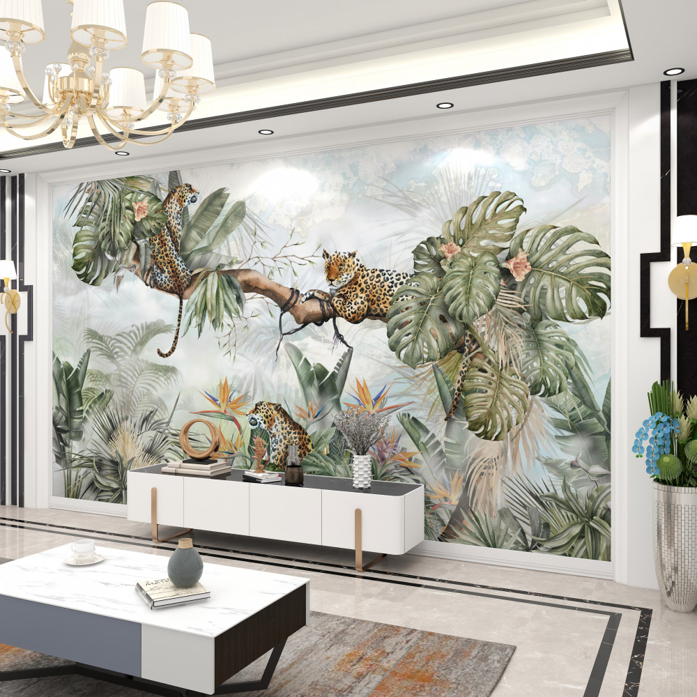Tapeta Fototapeta lampart odpoczywa na gałęzi (artykuł a93292 ) z kategorii Fototapety 3D