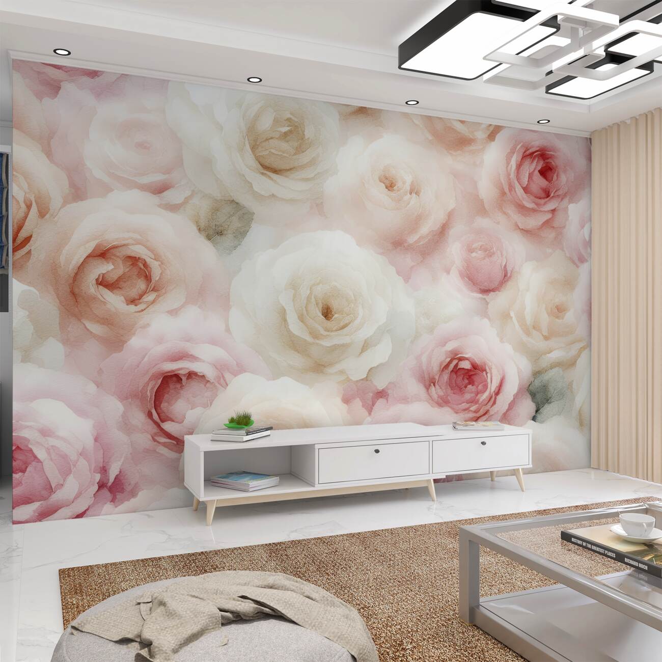 Tapeta Fototapeta Lekkie róże białe i różowe (artykuł u11266 ) z kategorii Fototapety 3D