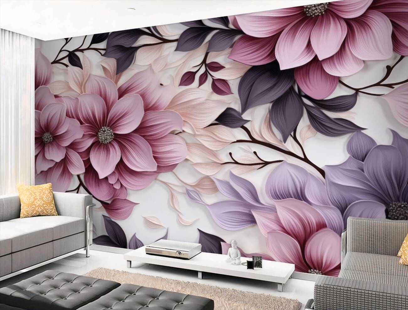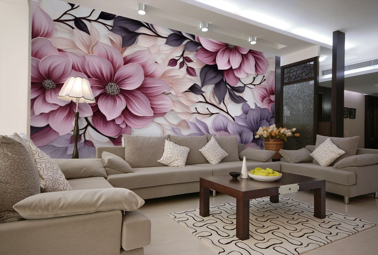 Tapeta Fototapeta Lila i różowe kwiaty objętościowe (artykuł u11521 ) z kategorii Fototapety 3D