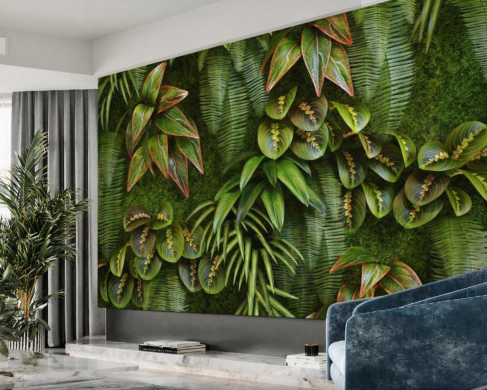 Tapeta Fototapeta liście bananowca i ciemnozielona paproć (artykuł a92587 ) z kategorii Fototapety 3D