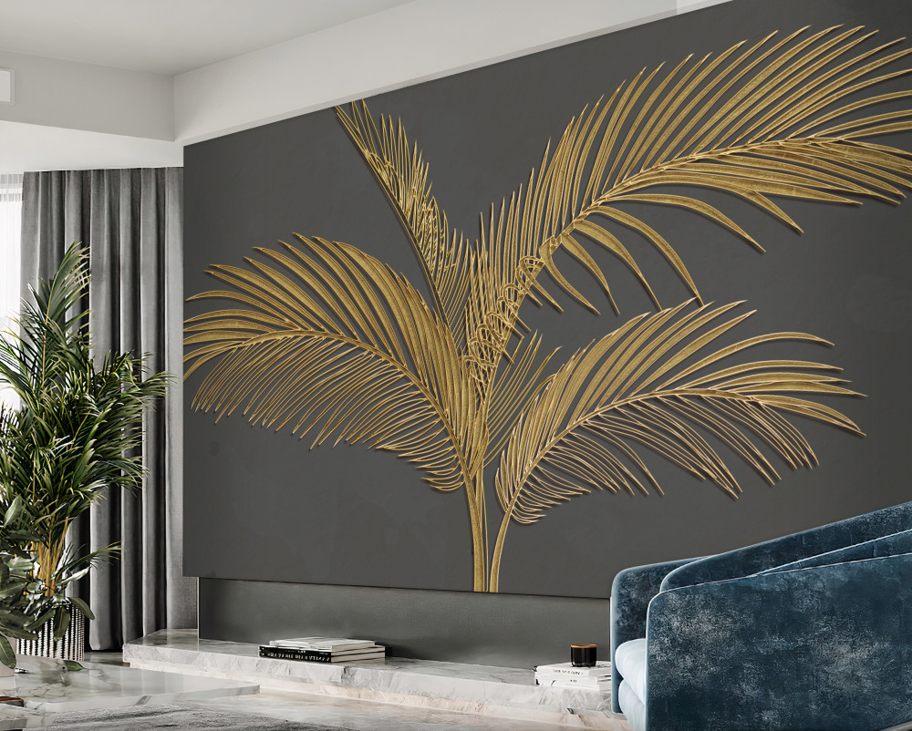 Tapeta Fototapeta liście piór w kolorze brązowym na szarym tle (artykuł a90259 ) z kategorii Fototapety 3D